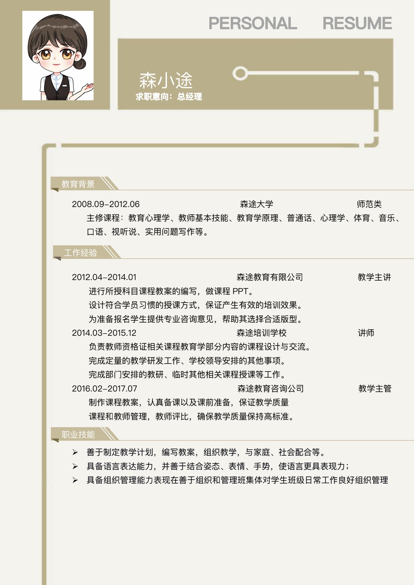 求职意向:教师